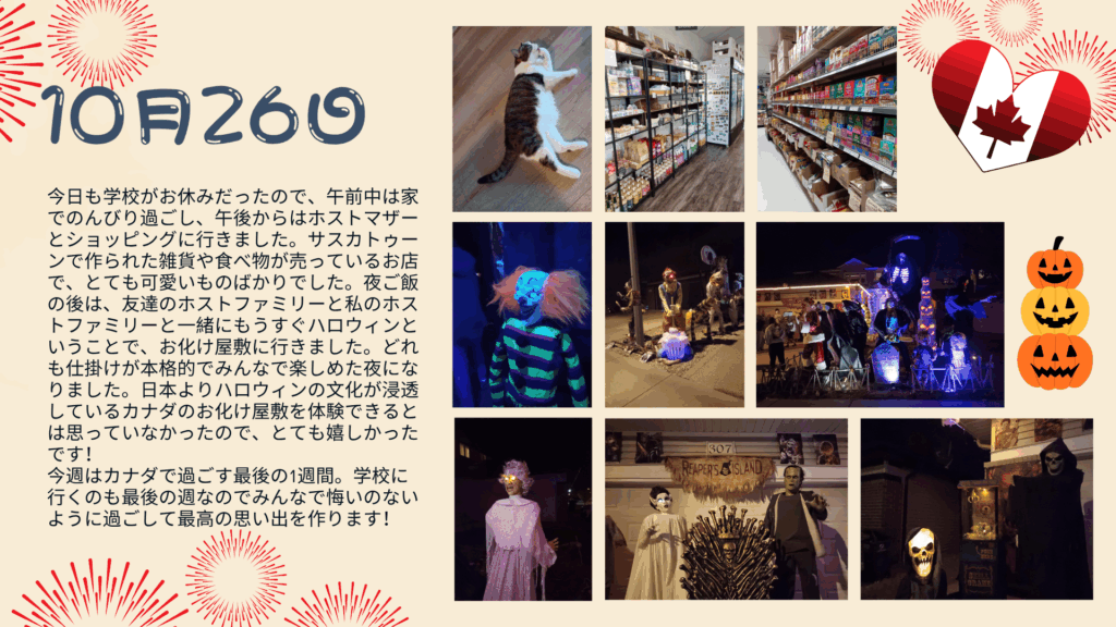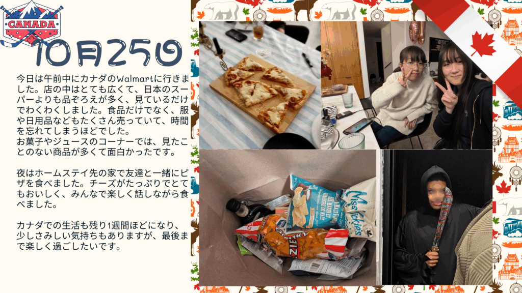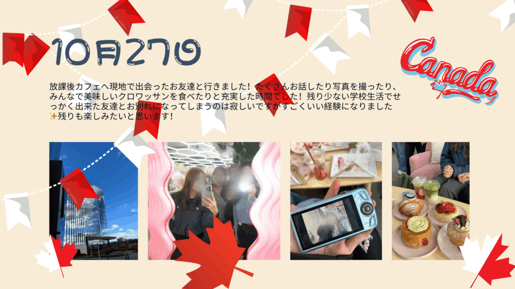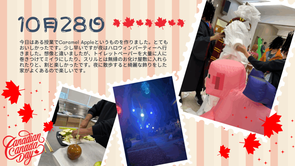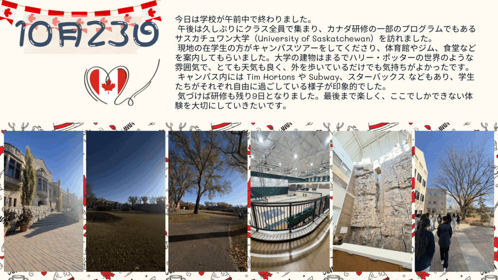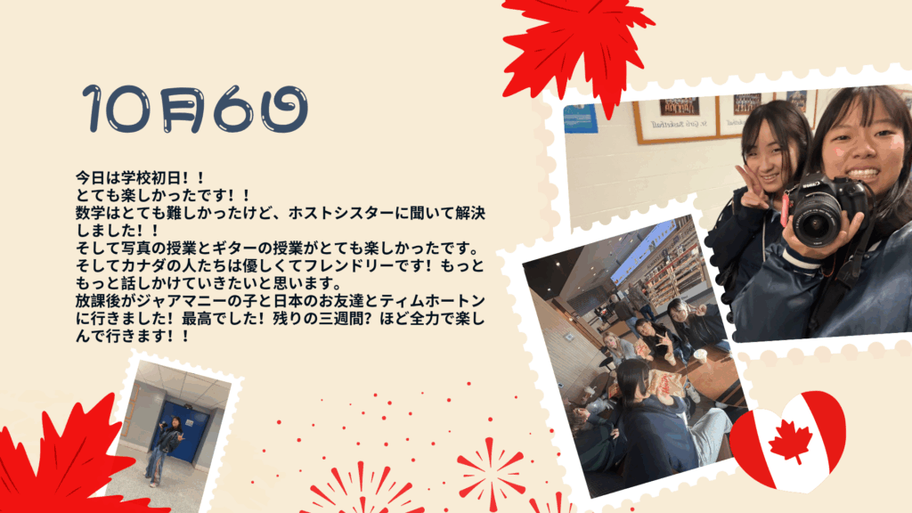 10月4日から11月3日まで、グローバルリーダー・コースの1年生がカナダ研修へ出発しました。現地から届いた生徒のレポートをお届けします!