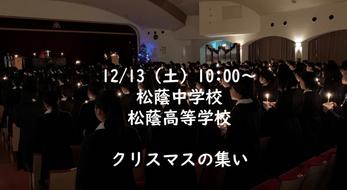 12月13日(土)10:00より、本校にてクリスマスの集いを行います。学校の雰囲気、在校生の様子をご覧いただけるいい機会です。低学年の方もご参加いただけます。ぜひご来校ください。※要事前申込