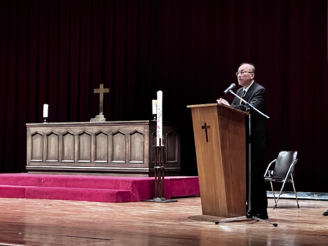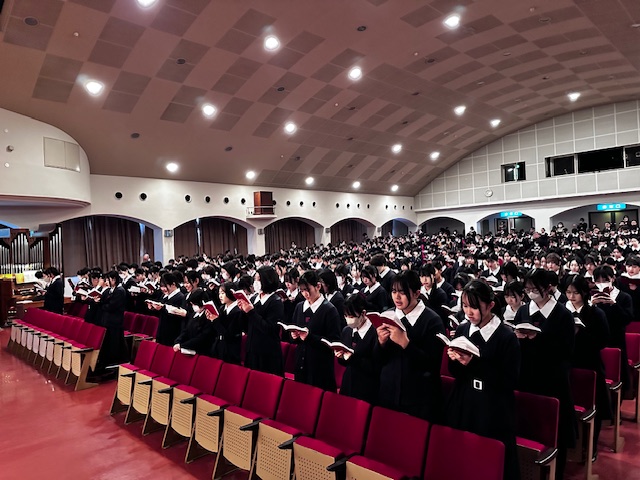 「阪神・淡路大震災」発生から、はや31年、松蔭では毎年、この大震災で亡くなられた方の魂の平安のため、今もなお心が痛める人々のため、そして震災の事実とその教訓を忘れないために、全校生徒でお祈りの時を守っています。今年も震災前日の16日に震災をおぼえて「震災記念礼拝」を執り行いました。