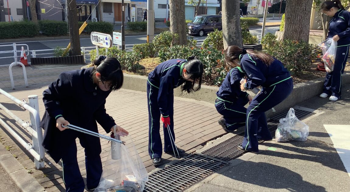 学校周辺やバス停、最寄り駅の王子公園駅・灘駅で清掃活動を行いました。