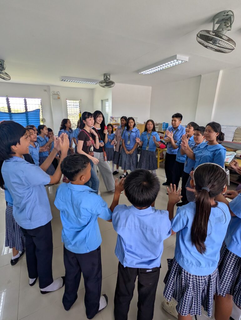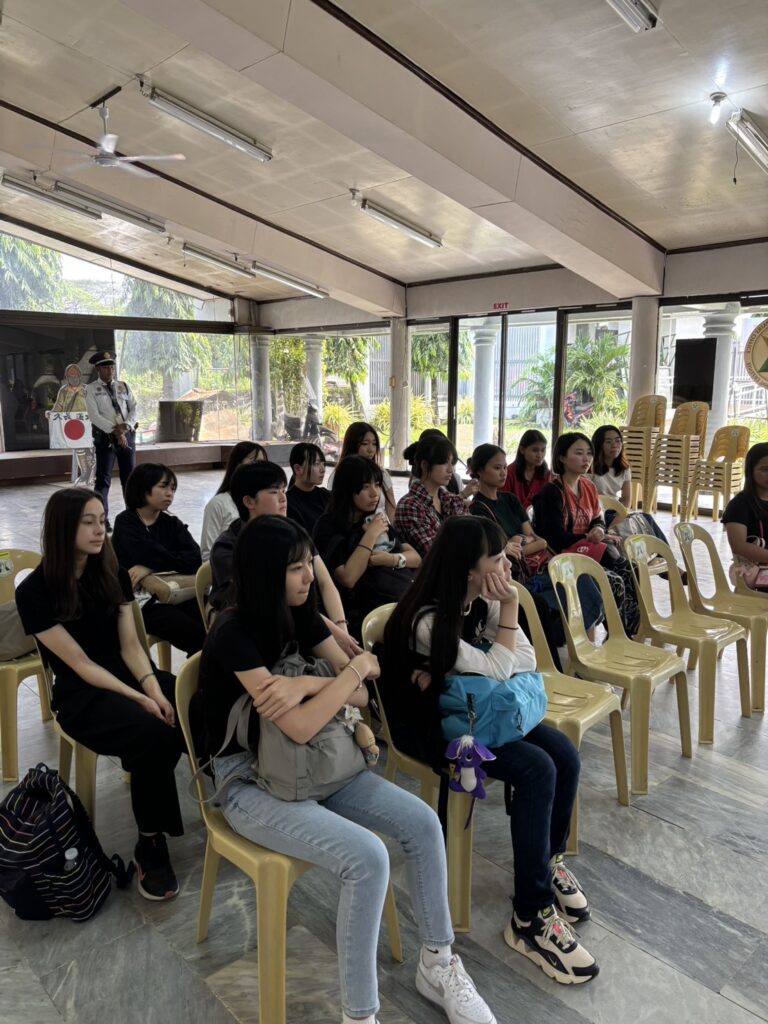 DAY5 2/23 Mon とDAY6 2/24 Tueは、LOOBにてフィリピンの教育事情を学び、2日間に分けて、小学校と高校で出前交流授業を行いました。これまで日本の保育園や小学校で出前交流授業の経験を積んできたJ3G組、腕の見せどころです。簡単な日本語講座や、ニョッキッキゲーム、折り紙講習会などを通して交流しました。フィリピンの小学生も高校生も、みんなものすごくパワフル!盛り上がりの熱量がすごいです。また、授業が終わると、一緒に写真を撮ったりサインをねだられたり、みんなアイドル並みの大人気。別れ際には覚えたての「サヨナラ〜」で見送ってくれました。また、現在フィリピン中央大学に通っている日本人学生の方にインタビューする機会をいただき、貴重な機会となりました。