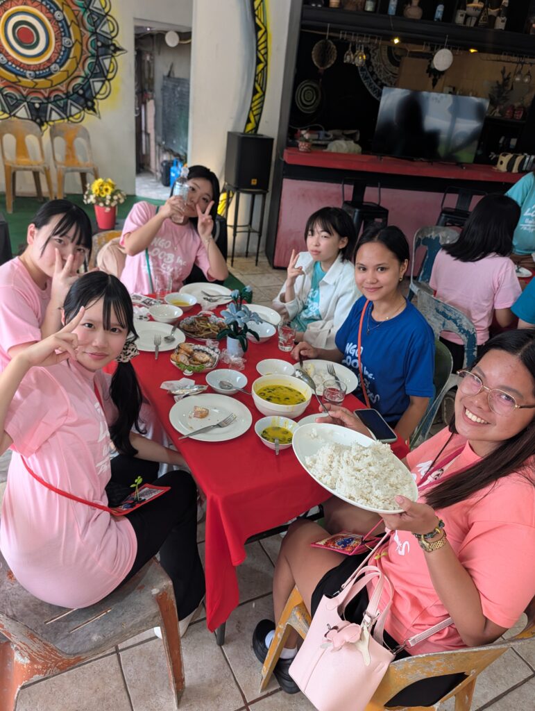 Day8は待ちに待ったopen dayでした。午前中は各自部屋で休息を取り、午後からは近くのショッピングモールへ出掛けました。フィリピンのシスターに同行していただき、それぞれお土産を探したり、現地の料理やスイーツを楽しんだりと、心身ともにリフレッシュする時間を過ごすことができました。2週間の研修も折り返し地点を迎え、明日からの活動に向けて気持ちを新たにする良い時間となりました。