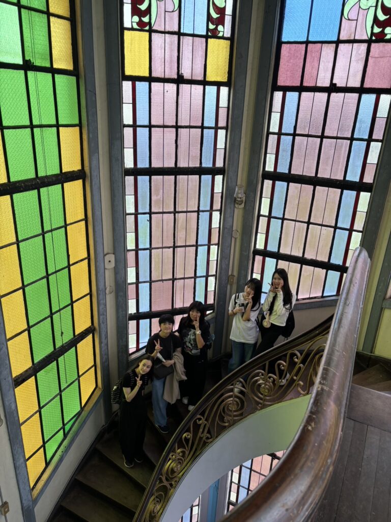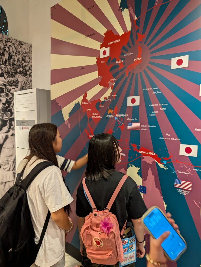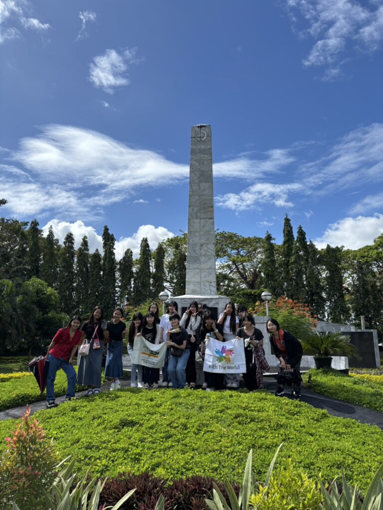 Day7では、LOOBにてフィリピンと日本の第二次世界大戦における関係や当時の歴史的背景について学習した後、バランタン国立墓地及びLizares Mansionを訪問しました。現地での見学を通して、戦争の歴史をより具体的に理解する貴重な機会となりました。この日はLOOBで学習をする最後の日でしたので、生徒みんなのお気に入りのテラスでお昼ご飯を食べました。次に、バランタン国立墓地へと移動しました。ここでは、戦争によって亡くなられた方々の名前が刻まれた石碑や、身元の分からない兵士のための棺を模したモニュメントが設置されていました。現地ガイドの方から、第二次世界大戦下における出来事や当時の社会状況についてご説明をいただきました。最後にLizares Mansionへと向かいました。ここはイロイロ市を代表する歴史的邸宅の一つです。1937年に当時の富裕層によって建てられたもので、現在は私立学校の敷地内に保存され、礼拝堂として活用されています。お城のような豪邸に、生徒は興味津々の様子でした。