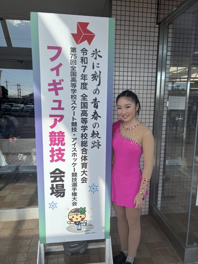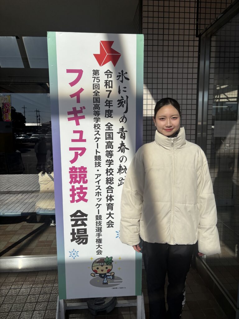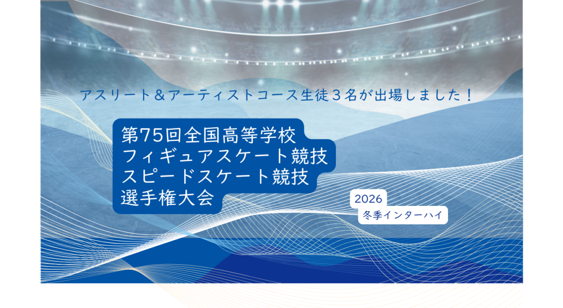 2026年1月23日から開催された、第75回全国高等学校フィギュアスケート競技選手権大会(冬季インターハイ)に、水口乃按さん(高校3年アスリート&アーティストコース在籍)、藤原ゆりあさん(高校1年アスリート&アーティストコース在籍)が出場しました。目標の決勝進出とはなりませんでしたが、2人とも素晴らしい演技でした。今後の活躍を期待しましょう。