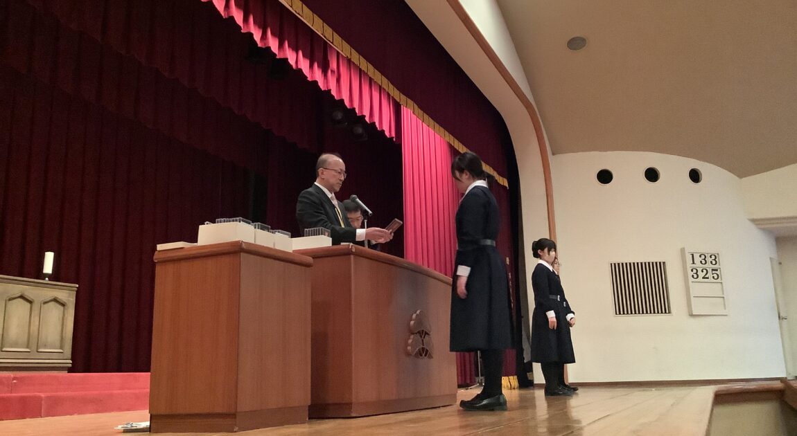 2025年3月21日(土)終業式後に、今年度の松蔭賞の授与式が講堂で行われました。松蔭賞は、一年間の学業成績が優秀であった生徒に対して贈られる賞です。