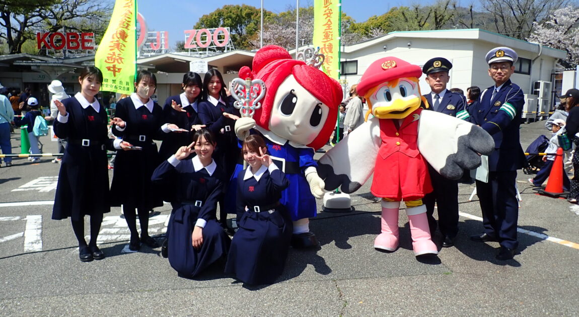 4月3日(水)今年度も生徒会の生徒とピーノちゃんが「春の全国交通安全運動プレキャンペーン」に参加しました。警察署や交通安全協会の方々と、神戸市立王子動物園の入場口前駐車場にて、交通事故抑止啓発チラシを配布し、交通安全を呼びかけました(サンテレビやNHKのニュースにも掲載されています)。参加した生徒は、「小さい子どもたちにも笑顔で呼びかけ、楽しく参加できた」「交通安全を考えるよい機会となった」と話しています。そして4月1日から、自転車への交通反則通告制度が導入されています。私たちも交通ルール・マナーを向上させ、交通事故を防ぎましょう。