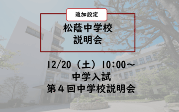【中学入試】【追加】12/20(土)第4回中学校説明会